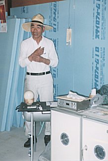 金光町大字佐方の藤沢繁行さんは,地域振興の目玉としてダチョウの産業化を目指しています。まず,平成10年7月に試験的に沖縄県から1組のつがいを導入し,続いて平成11年2月に加茂川町からもう1組つがいを導入しました。約400uの飼育場は全て藤沢さんの手作り。自ら沖縄県等の先進地を視察して作り上げたものです。また,彼らのために30aの水田を借り上げ,飼料(主にアルファルファ)を作付しています。