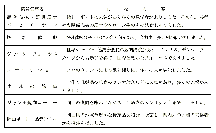 また,この大会は「晴れの国・酪農・ふれあい」をテーマとして,生産者と消費者の交流とふれあいを通じて,畜産・酪農を理解してもらい,生乳・乳製品の消費拡大を図ることを目指して開催しており,大勢の来場者を得てその目的も達成されたと思います。