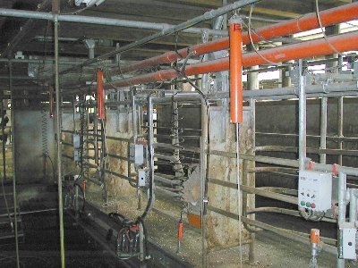 フリーストール牛舎(1,000u,ストール数70,古電柱を利用)