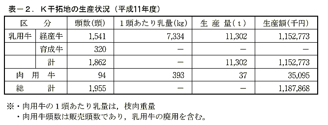 I県の中央部に位置するK干拓地では,干拓地内の農事組合法人が出資する株式会社が,堆肥の生産から販売までを行っています。施設の概況については表のとおりで,家畜の糞尿処理施設としては国内最大規模の施設です。