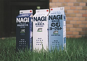 この牛乳は,産地限定の那岐山麓シリーズとして,低温殺菌牛乳(65℃,30分間殺菌),低脂肪牛乳,のむヨーグルトの3種類があり,いずれも1リットルのパックで販売されています(写真)。