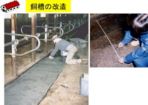 牛床,換気,繋留,飼槽,給水の5点セットで牛舎改造に取り組んでいました。