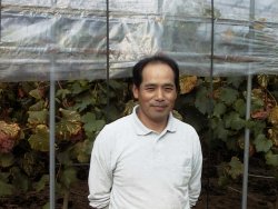 今回お話をうかがったのは,金居正彦さん。金居さんは邑久郡邑久町においてピオーネをハウス栽培されています。ピオーネの栽培に堆肥を利用されていますので,金居さんがどのように堆肥を利用されているか,農場でお話をうかがってきました。ブドウの他にも,金居さんの農場では,ミカン,ナシを栽培されています。