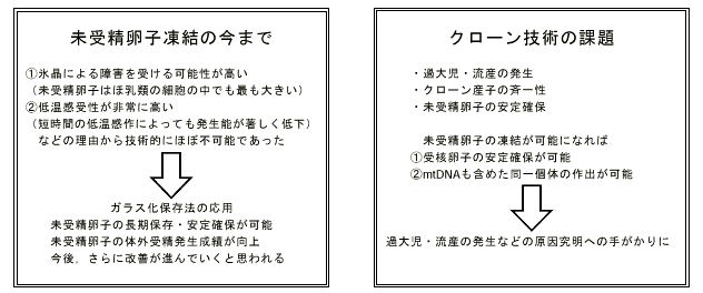 | 低温保存法 | ……… | 受精卵を常温あるいは低温で保存する方法として開発されましたが,長期間の保存は不可能でした。 |