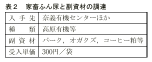 利用している堆肥は,鋤こみ用に袋詰め堆肥として奈義町有機センターから高原有機を購入しています。奈義有機センターの高原有機の価格は1袋(40リットル)300円です。奈義有機センターの高原有機以外にも,樹皮を主成分としたバーク堆肥であるアースファットン等を使われることもあるそうです。