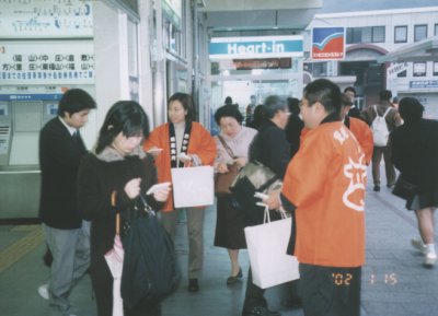 |   '2002 3月平成14年1月15日にJR笠岡駅で行った「牛肉安全啓発活動」の様子