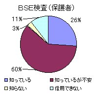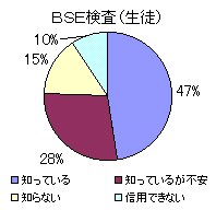 「BSE検査済み表示」(39%)が最も多く,次いで「産地表示」(28%),「価格」(25%)で「生産者表示のあるもの」(8%)とであった。生徒,保護者別も同じ傾向であった。