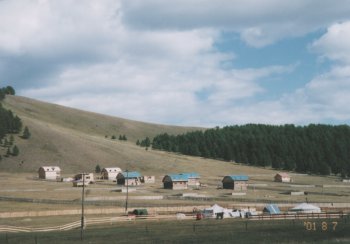 市街地から北へ約15キロ,セルベ川に沿ってサンザイ保養地に向かう舗装道路の両脇に広がる樹林に恵まれた丘陵地に,最近になって別荘地帯が形成されつつある。我先に借地を板柵で囲み,ログハウスなどの建築が流行している。今岡良子助教授の夫君エンフジャルガルは,1年前に来た時はこれほど別荘は建っていなかった,と驚くほどである。ウランバ−トル市内に,青空ホ−ムセンタ−と言うべき巨大な建設・建築資材市場ができ,室内装飾の様々な材料が販売されている背景には別荘ブ−ムが関係しているようである。
