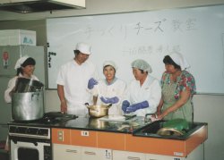 干拓の酪農家の女性で結成する笠岡湾干拓酪農婦人部は,仲間づくりを図るとともに,牛乳料理の研究・経営安定を目指した簿記記帳や生活設計の勉強会等の活動を行っている。近年,生乳を利用したモッツアレラチーズの加工研究に取り組み,市内の女性組織と連携して牛乳の消費拡大に向けたPRを行うとともに,新しい特産品の開発に取り組んでいる。平成12年度には,活動が認められ,「婦人グループの生活・生産活動に関する表彰」農林水産省経営局長賞(主催:農山漁家女性・生活活動支援協会)を受賞した。