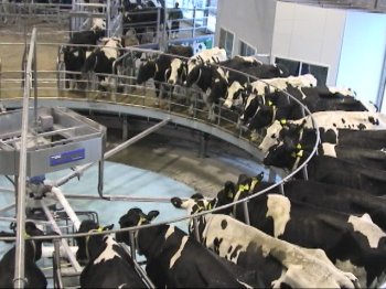 K牧場では,平成14年に,制度資金をつかってロータリーパーラーシステム(40頭外搾りタイプ)を導入した。乳牛が施設に慣れるまで苦労したが,今では牛の動きもスムーズである。現在,3回搾乳を検討中。