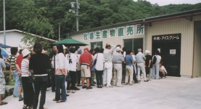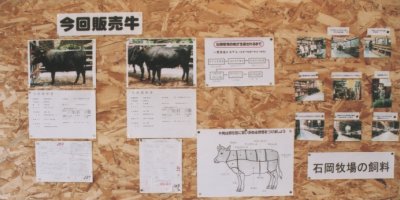 BSE発生以来,牛枝肉価格があまりにも安くなったため,消費拡大の打開策として牛肉直販を思いつき,食肉販売業(簡易形態)の許可を取って,平成14年の4月から毎月第4土・日曜日に牛肉直販(2頭分/月)を開始しました。販売の際には,「今回の販売牛」として生産履歴・給与飼料まで展示し,さらに牧場内を自由に見学できるようにしています。清潔な牛舎,隅々まで清掃の行き届いた場内を確認したうえで,消費者は「顔の見える牛肉」を安心して購入しています。毎月,大変な好評をはくしており,短時間で完売しているそうです。