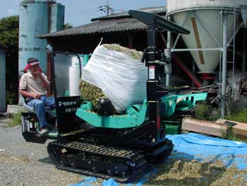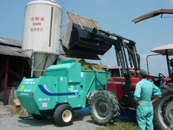 図3 細断型ロールベーラへの投入 |