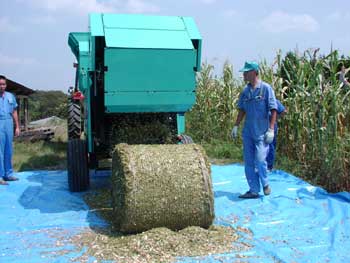 これまでのコーンハーベスタで収穫・細断したトウモロコシをロールベールに成形するもので,下記のような目的で開発されました。