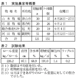 そこで,畜産センターではこれらの一環として,農林水産省の外郭団体である生物系特定産業技術研究推進機構や民間農機メーカーと共同で,省力かつ効率的な機械体系としてトウモロコシのロールベールサイレージを作る「細断型ロールベーラ」の開発・実用化研究を行ってきて,今年度その実用化に向けて,県内で現地実証試験を行ったので内容について紹介します。