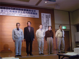 表彰式では,最優秀賞1点(加茂川町堆肥供給センター),優秀賞4点が表彰され,研修会では,農業総合センターの佐藤専門技術主幹から「家畜ふん堆肥の利用促進」,7畜産環境整備機構の本多審議役から「堆肥化技術の基本」と題した講演が行われ,参加者全員,熱心に聴講していました。