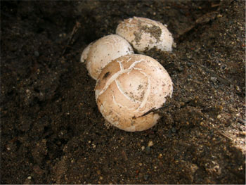 堆肥の発酵熱と栄養成分を利用して,マッシュルームを試作しています。昨年末に製品堆肥の上部に菌を直接散布して栽培試験を行ったところ,3月下旬から5月末まで写真のようなしっかりとしたものが発生し,予想以上の収穫がありました。15年度は試験ハウスを導入し,一歩進んだ試験を行う予定です。