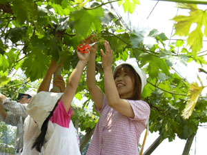 ブドウの摘果作業