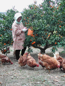 日生町鹿久居島のミカン園の島コッコ