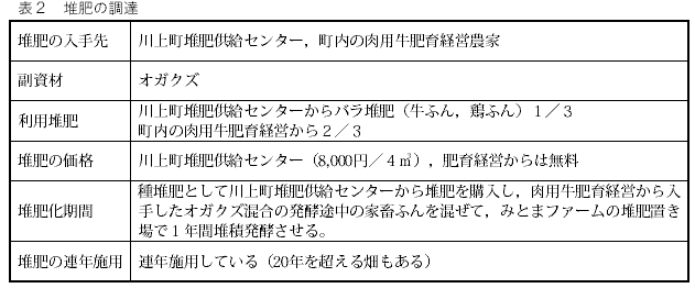 今回紹介しました三苫さんの事例では,化成肥料を使わないで,堆肥のみで栽培されています。その結果,農薬散布回数も少なくなり,さらに多収につながっている利点がうかがわれます。このような事例を参考に,堆肥の利用が多くなることを期待しています。