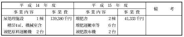 このため,酪農家5戸が「長船町有機肥料生産組合」を設立し,良質堆肥の生産と尿の液肥化処理・利用を図ることを目的に,平成14年度に尿処理施設,平成15年度に堆肥化施設を整備しています。