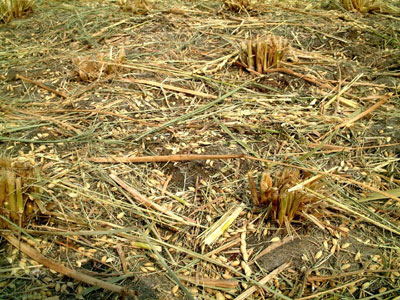 田植えは,6月下旬〜7月上旬に実施しました。施肥は,堆肥を4t/10a施用したのみです。また,一部でアオムシの被害があったものの,農薬・除草剤は,使用しませんでした。収穫は 黄熟期に達した10月9日に実施しました。