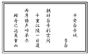 平成14年には我々の詩吟クラブで中国の長江の三峡を船で下る旅行に参加し,途中立ち寄った白帝城で李白の書いた「早発白帝城」を大声で吟じたのが思い出に残ります。