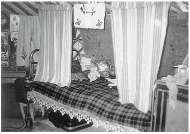 ベッドの数は普通は2つで,しかも頻繁に移動を繰り返す季節にはベッドを減らし,あるいは使わない牧家も多い。ゲルの寝所はカマドの位置から奥の部分で,ここに手作りの分厚いフェルト製絨毯を敷き,その上に寝具をひろげる。私はホームステイの時,ベッドに寝かされたこともあるが,多くの場合は寝袋に入り,子供たちと頭を並べて眠ったのである。家族の多い家庭ではベッドの下まで寝所になっている。