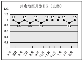 人工哺育牛の出荷平均DGは去勢で1.07s,雌で0.96sと県平均(去勢1.05s,雌0.91s)を上回る良好な成育で,月別のDGの推移をみると,季節の変わり目の9月及び1,2月にDGの減少傾向がみられ,なかでも,雌の減少率が大きい結果となりました。