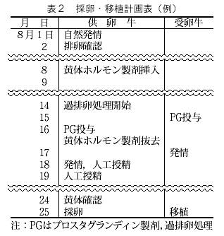 現在,当家保で実施している採卵移植計画表の例を表2に示しました。
