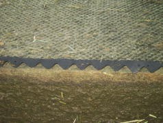 ウェーブマットに似ていますが,マット裏の飼槽側に飼料が入り込まないように一工夫しています。天然合成ゴムを使用しています。