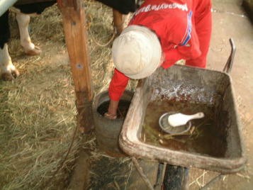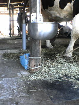 今回改善を行った農家では,サイフォン式の水槽で,吐水量が少なく(2.0g/20sec以下),一頭の牛が水を飲み始めると水位が下がる(逆流も)ことが多く,また汚れやすく,飼料が腐敗しやすいという問題を抱えていました。