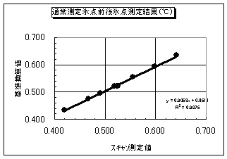 しかし,任意バルク乳だけの測定値による検量線では,満足な直線性が得られないので,通常測定値前後の氷点について検証する必要が生じました。
