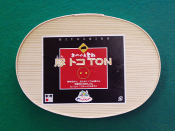 次男にあたる「豚トコTON」弁当は、平成17年度の岡山国体に向けて開発されたお弁当で「おかやま黒豚」をトコTON(とことん)使用しています。その特徴は、なんと言ってもボリュームの多さです(お弁当を手にした時に重量感を、お弁当を開けた時にお肉の量を実感できると思います)。味に関しても抜かりはなく、弁当に添えられているタレや辛子マヨネーズを付けて食べると一層おいしく食べられます。現在、1日の販売数量約100食となっています。