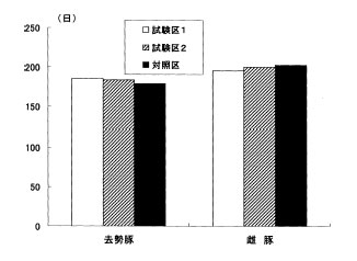 110s到達日齢およびロース部位の肉質成績については図5、表2のとおり差がありませんでした。