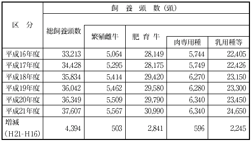 土地基盤に立脚した肉用牛経営は,中山間地域の活性化,牛肉の安定供給に欠かせない産業であり,本県の肉用牛経営が発展するためには,特に肉用繁殖経営の安定と拡大を中心とした振興対策が急務となっている。