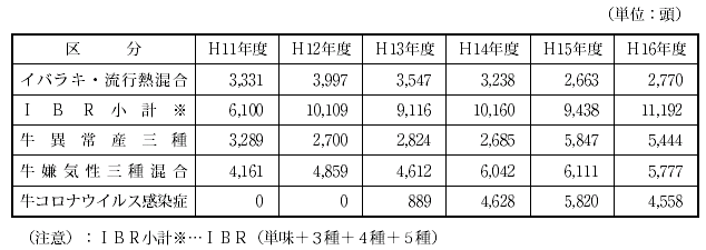 最近の主要な牛関係予防注射実施状況は次のとおりです。