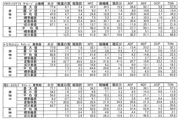最近における粗飼料分析の概要をお知らせしましたが、表中の最大値、最小値、及び変動係数等から判断しても、気象条件、栽培条件、刈り取りステージ、水分調整等により飼料成分はかなり異なることが分かります。