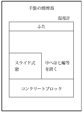 C乾 燥:燻煙器の中の七輪に炭をおこしておく。