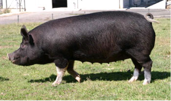 岡山県では,昭和53年に鹿児島県からバークシャー種の種豚を導入して以来,生産振興を図ってきました。また,平成8年度から3年間にわたって原産地であるイギリスから優良種豚を導入し,さらに高品質な黒豚の生産に取り組んでいます。現在の年間生産頭数は約3,500頭です。総合畜産センターでは,黒豚の生産農家に優良種豚および人工授精用の液状精液を供給し,さらに,消費者においしい黒豚肉を食べていただけるように,特徴ある飼養方法の検討を通して「おかやま黒豚」の振興に努めています。
