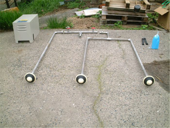鳥取県方式の施設は,ブロアー,散気管(デヒューザー)と配管のみと非常に簡易なものでした。一つは20頭規模の酪農家で20万円,もう一つは繁殖母豚100頭規模の養豚農家で,中古FRPサイロを活用し曝気槽を4槽設置していました。臭いの発生も少なく,ほ場散布するには何ら問題のないものでした。