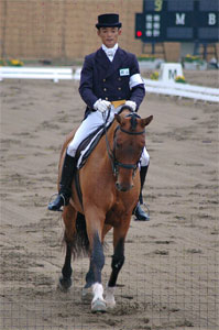 岡山国体で馬場馬術競技2種目 (セントジョージ賞典、自由演技) 制覇した原田選手とグァデループ号 |