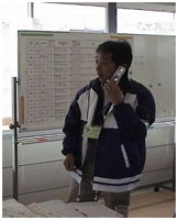 | <総務係> 馬運車と頻繁に連絡を取り合い、到着時間を正確に把握。混雑状況をみながら蒜山サービスエリアでの待機を要請 |