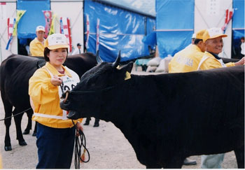 さて平成14年の秋,いよいよ本会場での審査。全国から選抜された見事なまでの牛群に圧倒されました。結果は,優等賞5席を獲得。長いようであっという間の1年ではありましたが,私にとっては,夢のような何物にも代え難い経験になりました。