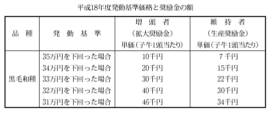 和牛子牛の全国平均価格が35万円を下回った場合,奨励金が交付される事業です。