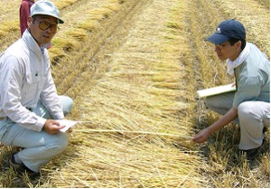 |  (写真6−1)収集ロス(切断ワラ) |  (写真6−2)収穫ロス量測定 |