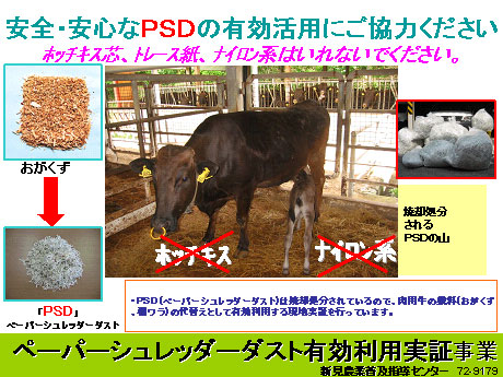 官公庁では,多くのPSDが排出されていますが,焼却処分されているのが現状です。また,肉用牛農家では,敷料として一般にはオガクズが使用されており,PSDの利用実績はほとんどありません。