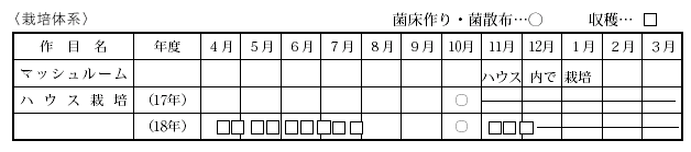 軽量なマッシュルームは高齢者でも手軽に扱えるため,特産化が有望視されています。そこで,安定収量を確保するため,栽培管理技術の確立を目指して,平成17年度から県の夢農業チャレンジ事業を活用し栽培実証を開始しました。