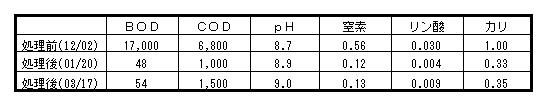処理前後の尿の成分分析結果は(表)のとおりで,汚濁物質はかなり低減されていました。(分析:岡山県環境保全事業団)