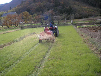 イタリアンライグラスの追肥として1t/10aを散布しました。
