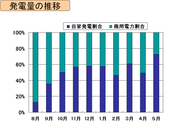 現在までの運転状況をみると,ガス発生量は,栄養価の高い生ゴミの投入割合を増やすことで増加し,施設内の消費電力のうち約73%をカバーすることができました。